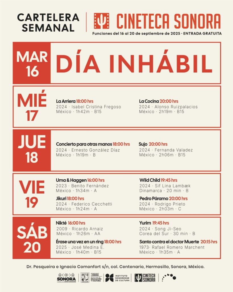17 – 20 / Cartelera Cineteca Sonora / Cineteca Sonora