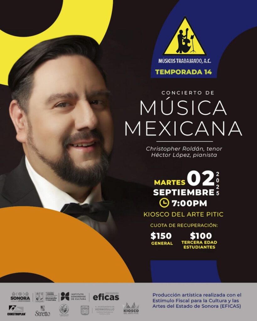 2 / Música mexicana con Christopher Roldán, tener y Héctor López, pianista / Kiosco de la Pitic