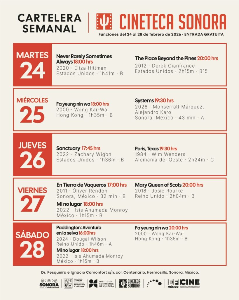 3 al 7 / Cartelera Cineteca Sonora / Cineteca Sonora