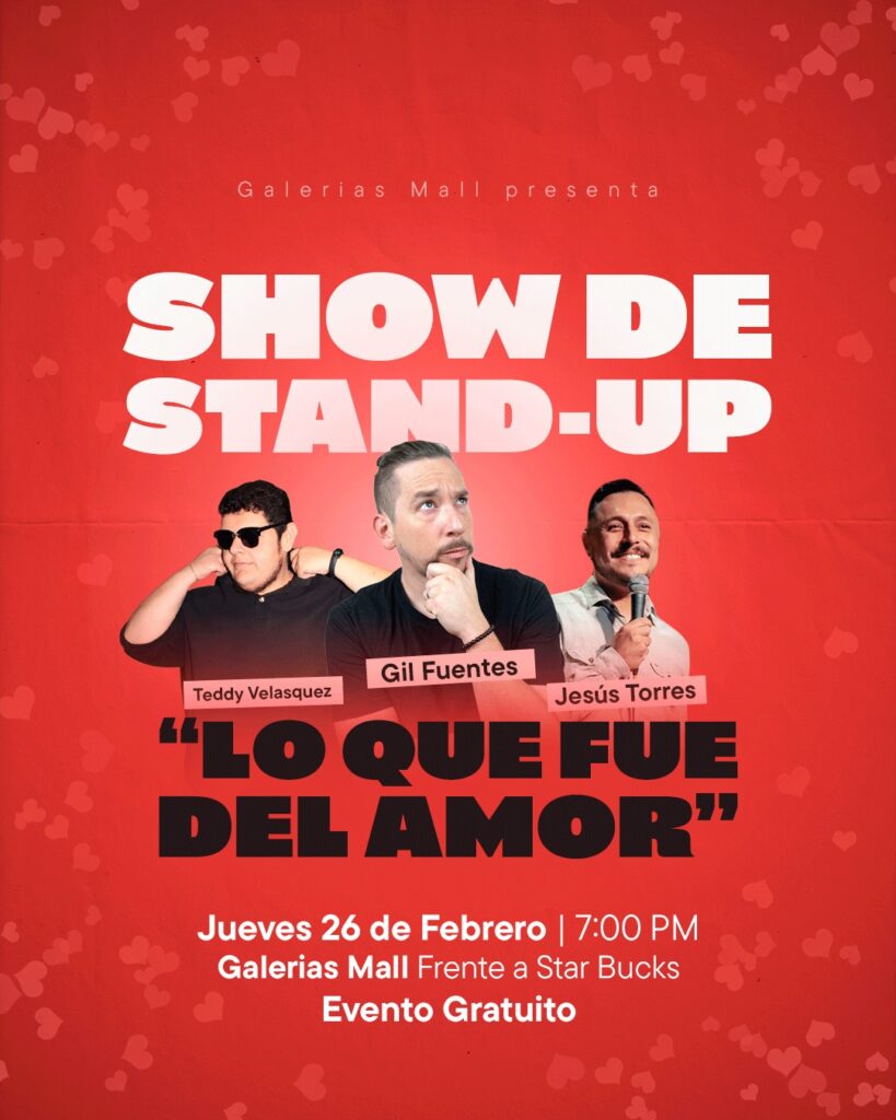 26 / Stand up con Gill Fuentes, Teddy Velasquez y Jesús Torres / Galerías Mall, frente a Starbuks